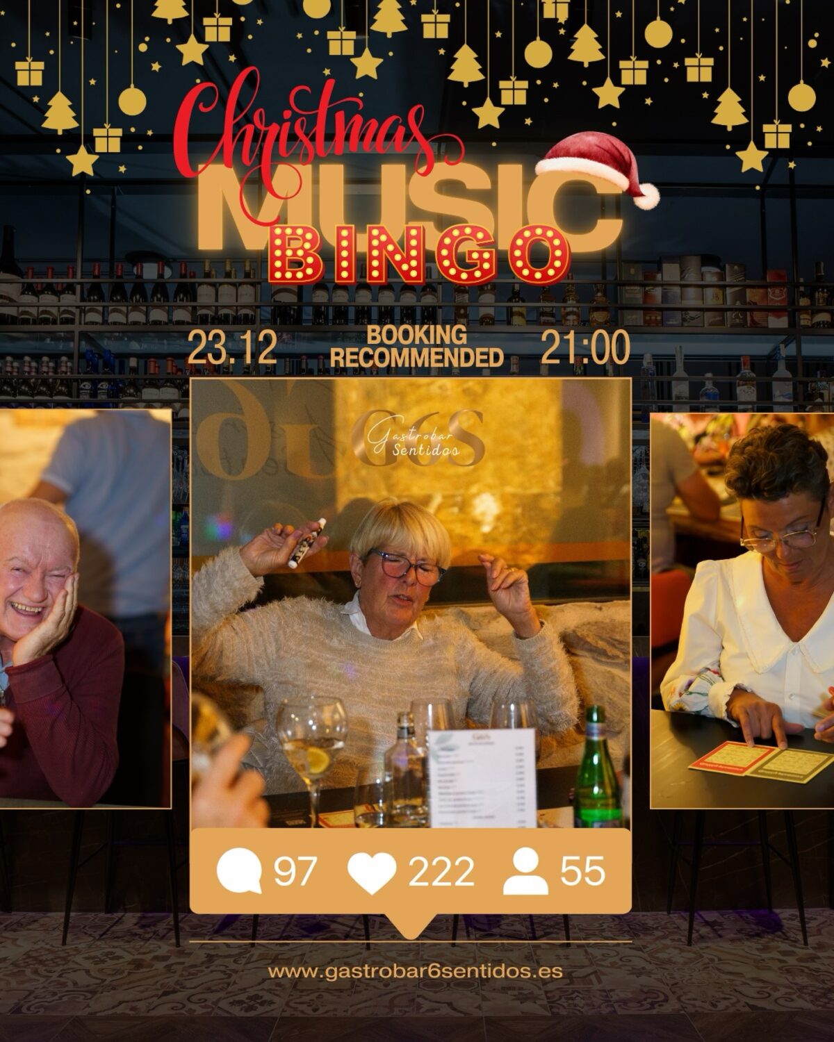 ¡El 23 de diciembre a las 21:00 llega a @gastrobar6sentidos nuestro Especial de Navidad: Music Bingo! Una noche única que solo ocurre una vez al año, llena de música, diversión y espíritu festivo. No te lo pierdas: reserva tu mesa mientras aún quedan disponibles y ven a vivir una celebración navideña diferente, animada y llena de sorpresas.