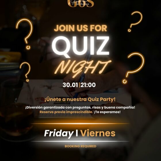 eventos enero 30, 2026 Ven a divertirte en nuestra Quiz Night Por fin mañana el 30 de enero a las 21:00, @gastrobar6sentidos se Read More Ven a divertirte en nuestra Quiz Night