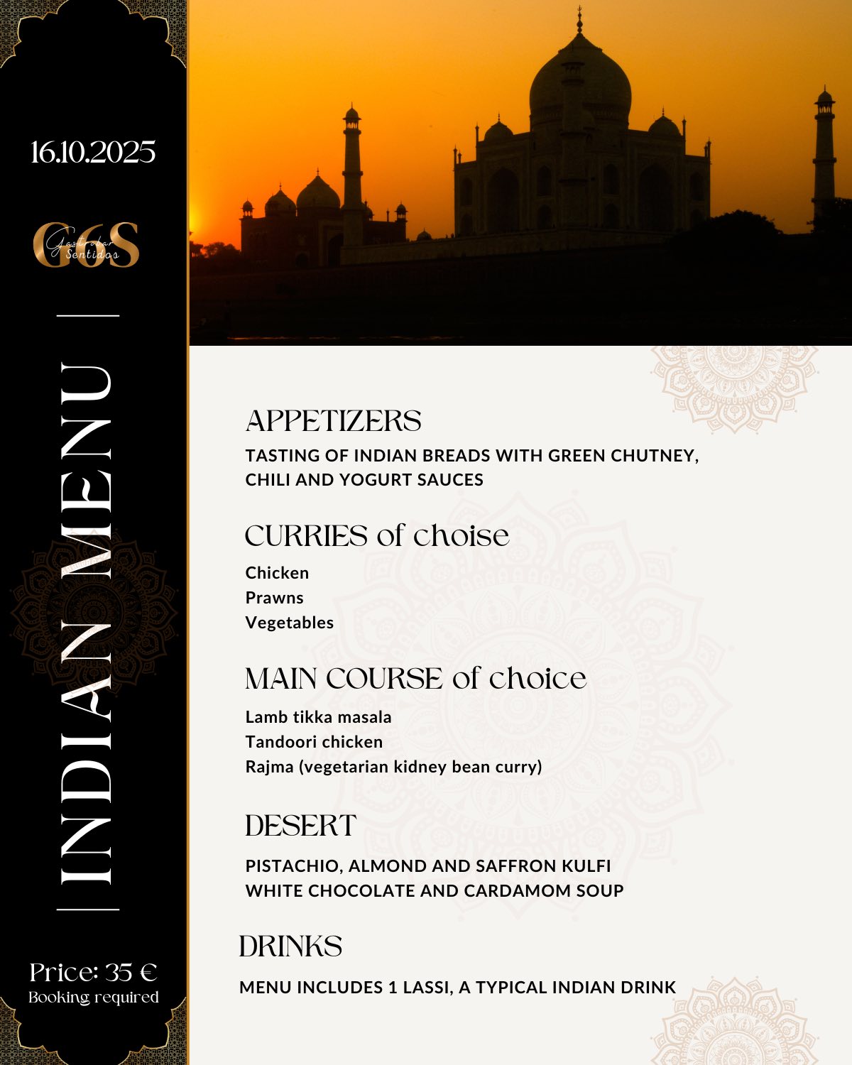El 16 de octubre a partir de las 19:00 en @gastrobar6sentidos te invitamos a un viaje de sabores con la presentación de nuestro menú especial de la India. Una oportunidad única para disfrutar de auténticos platos indios en un ambiente acogedor y lleno de aromas exóticos.