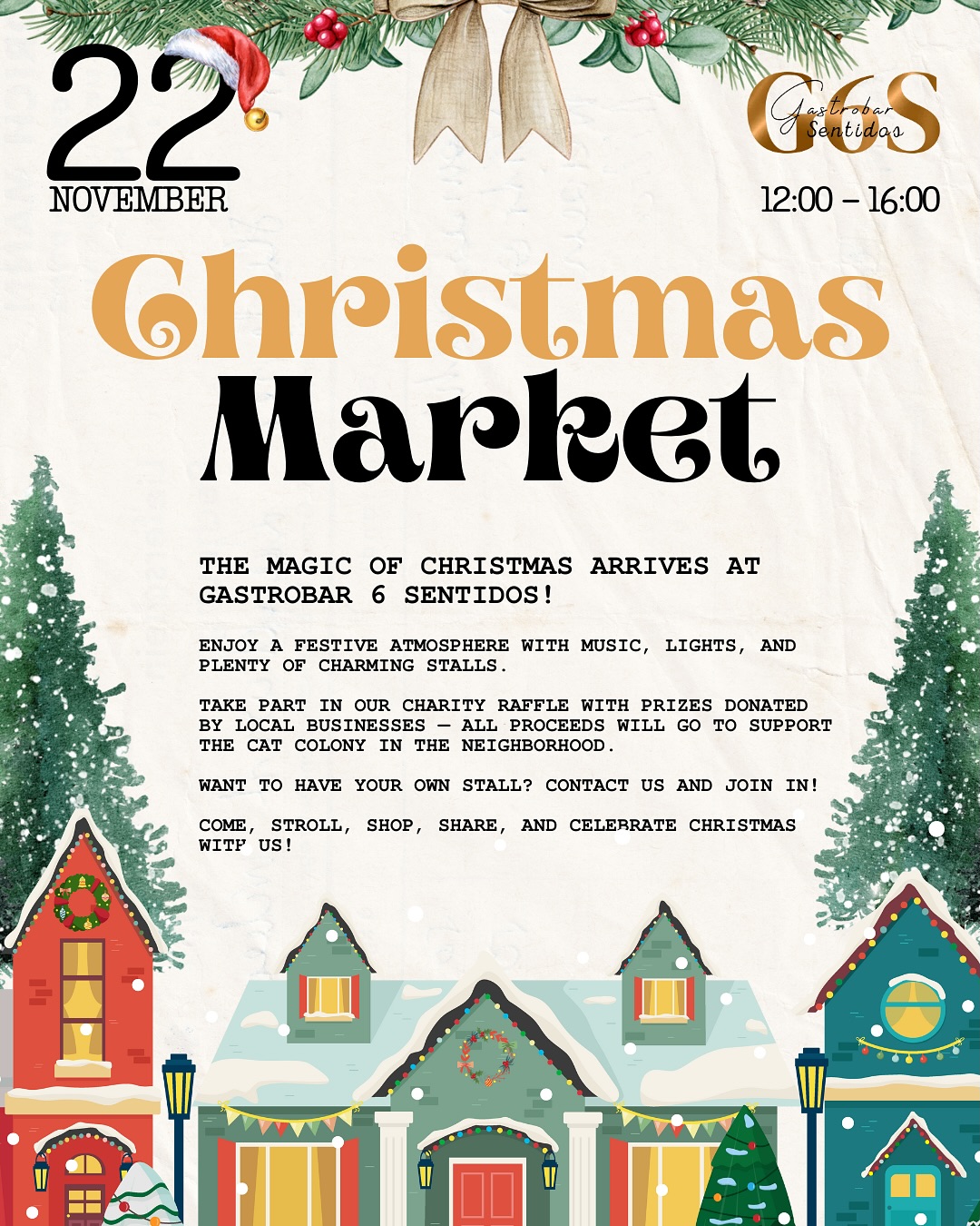 On November 22, from 12:00 to 16:00, we are waiting for you at our Christmas Market, an event full of magic, music, lights and lots of charm. Enjoy a festive atmosphere with stalls full of unique details, participate in our solidarity lottery with prizes donated by local companies (all proceeds will go to help the cat colony of the urbanization