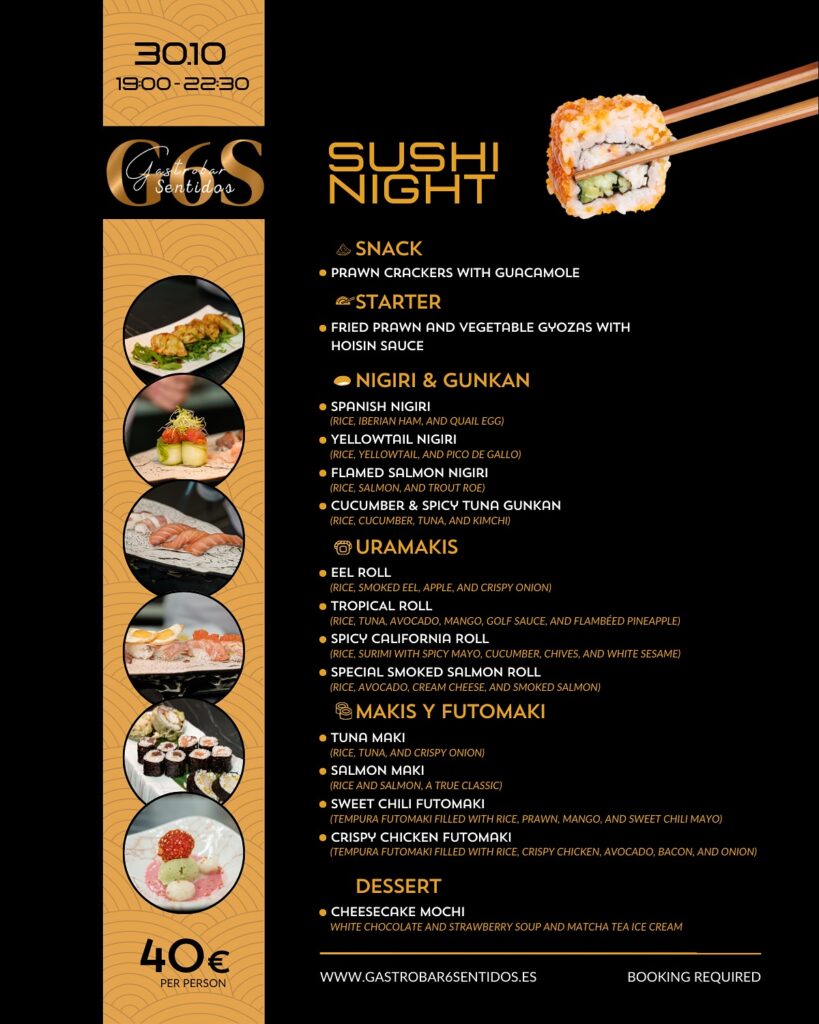 On October 30 at 19:00, at @gastrobar6sentidos, one of our most anticipated nights returns: Sushi Night! An evening to savor the freshness of freshly prepared sushi , artisanal nigiris and combinations that awaken the senses. Perfect for lovers of Japanese cuisine and good times.